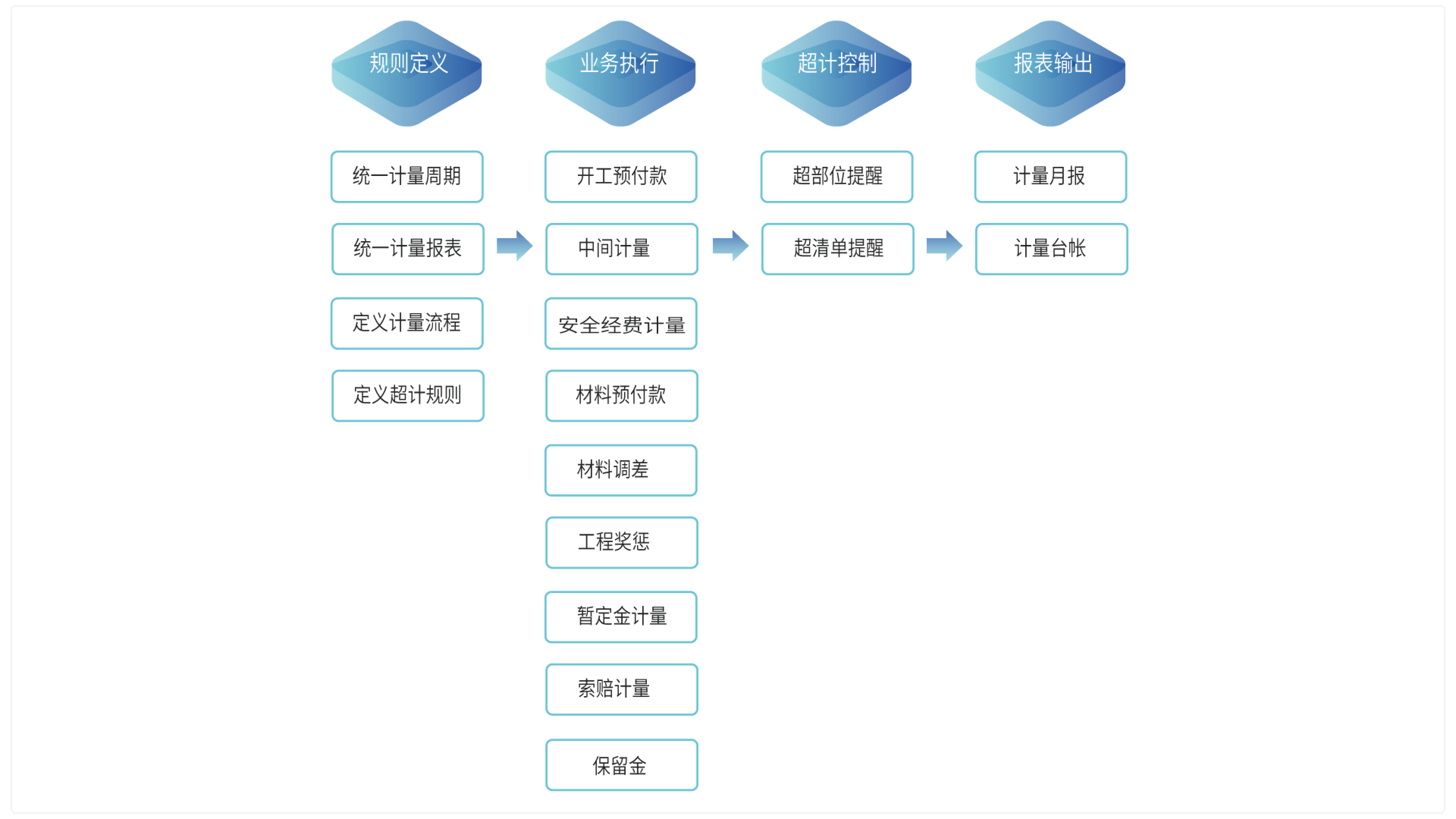 化、數(shù)字化、集成化”的原則構(gòu)建,通過計量支付業(yè)務(wù)事前計劃、事中控制、事后核算的規(guī)則,確保了工程計量支付的多方協(xié)同、過程